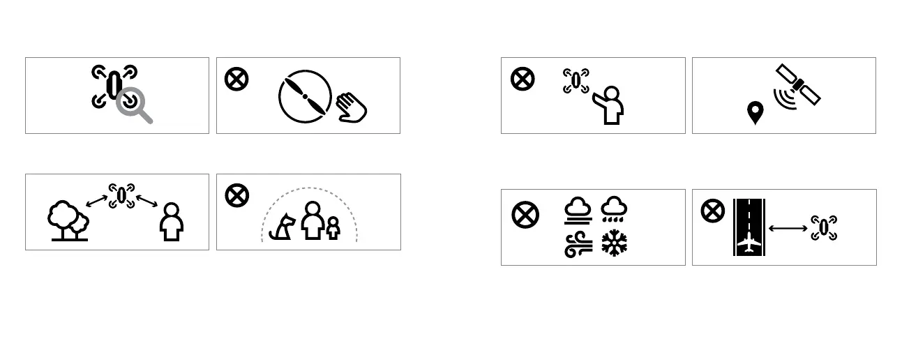Ne faites pas voler le drone à moins de 8km