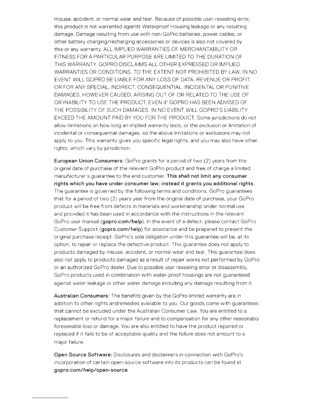 THIS WARRANTY. GOPRO DISCLAIMS ALL OTHER EXPRESSED OR IMPLIED