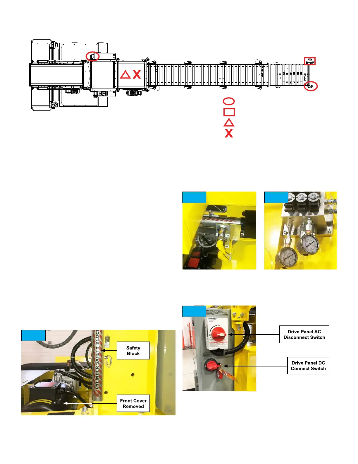 conveyor to its full height� Remove the safety block from its