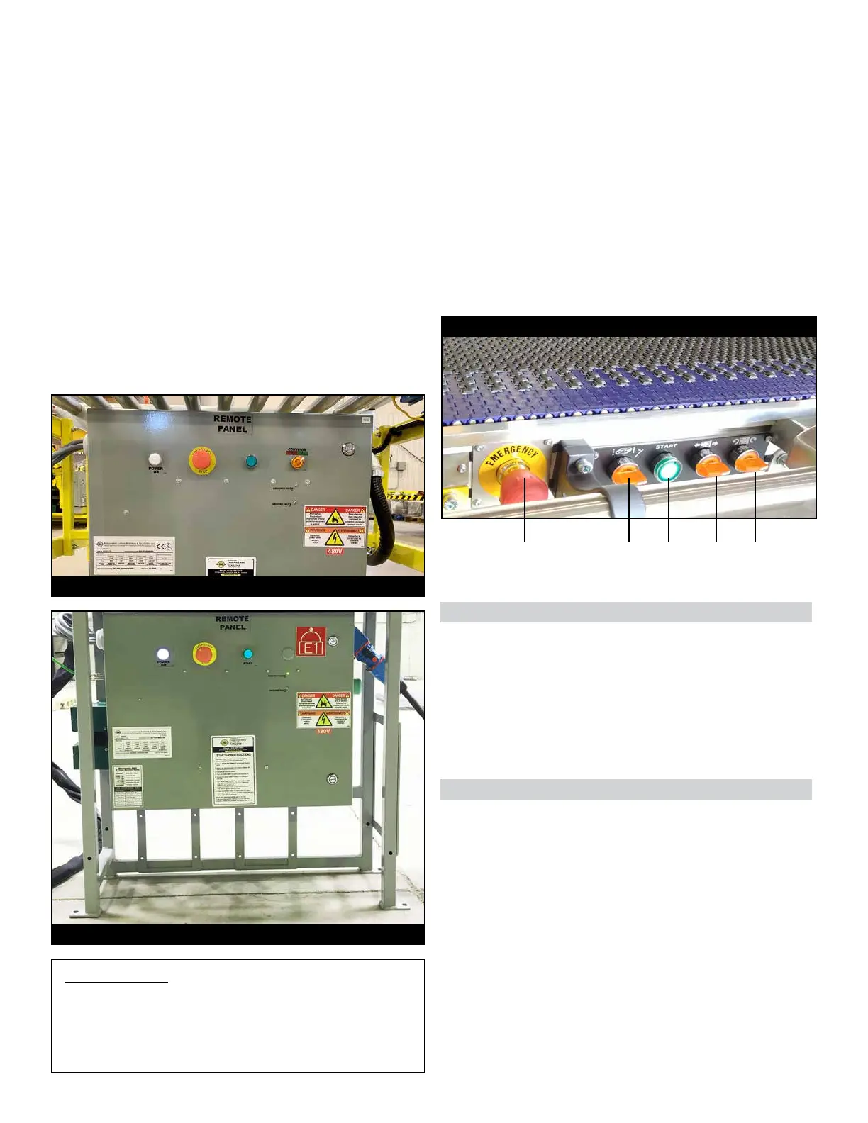 7. Press green START button on pivoting conveyor. Button will
