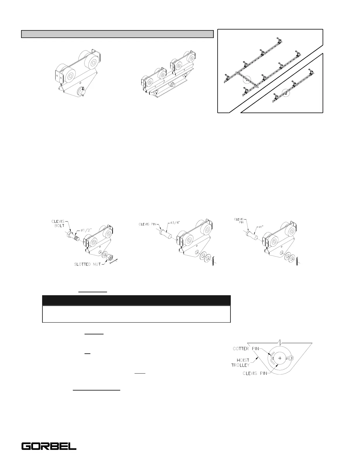 pin back into place. Slide washers on clevis pin and insert cotter pin through trolley