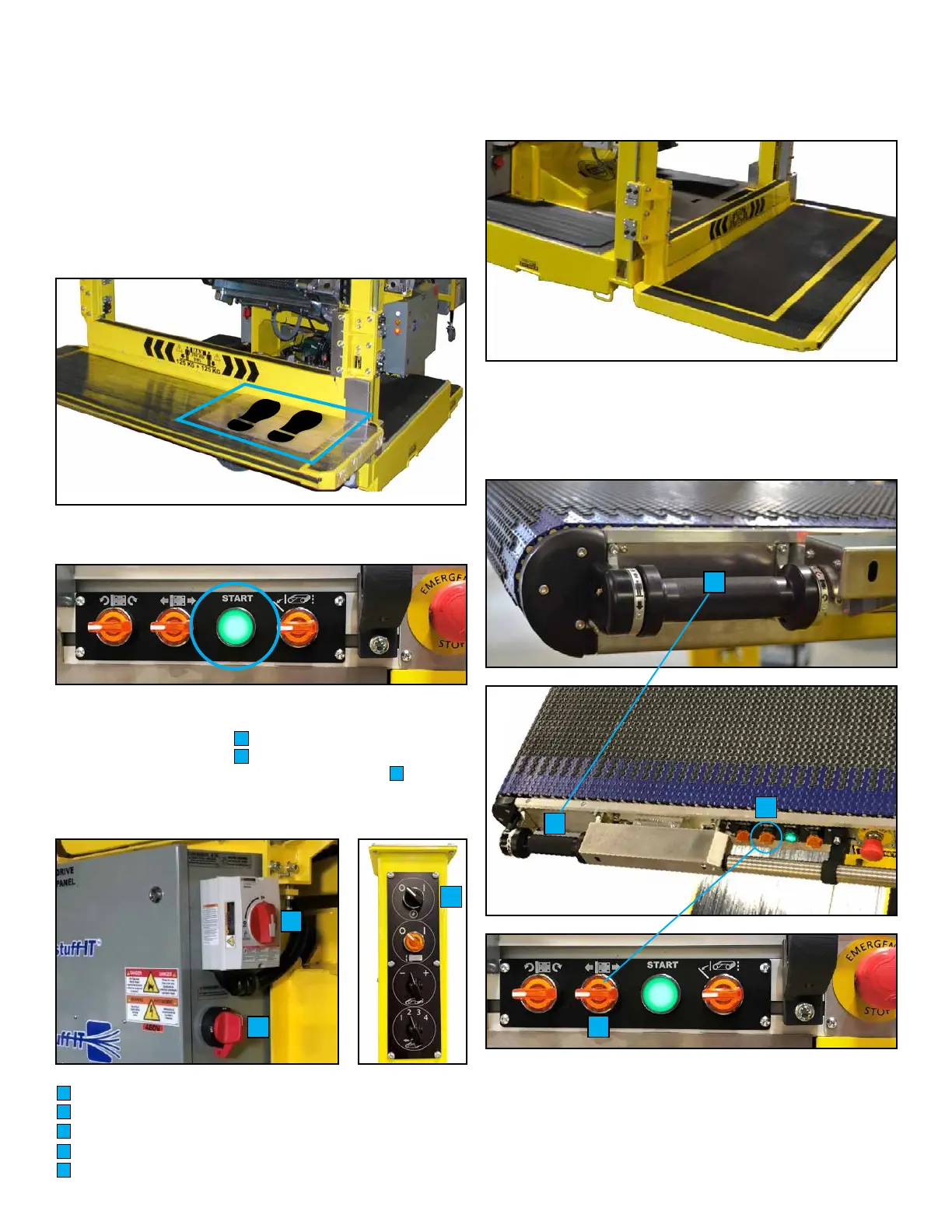 • Press green Start button on front pivoting conveyor.