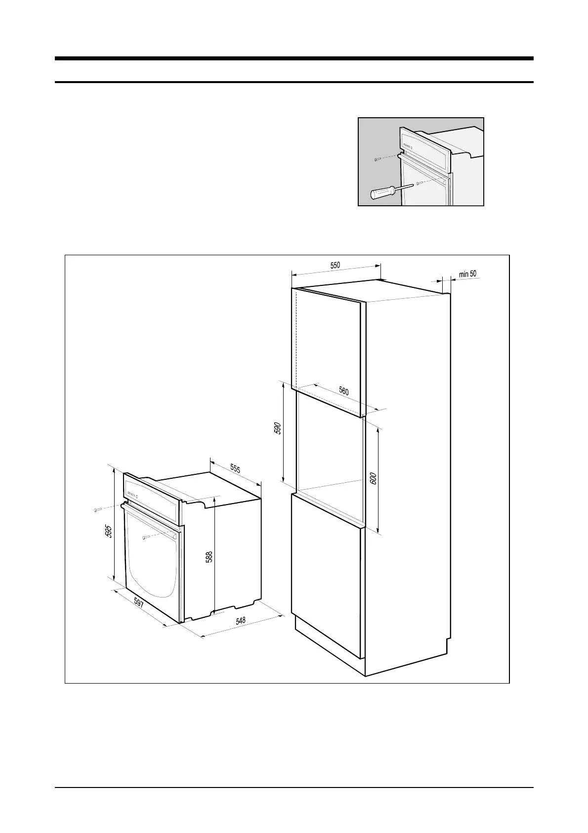 • Bottom of the kitchen cabinet (max 530 mm) must always be
