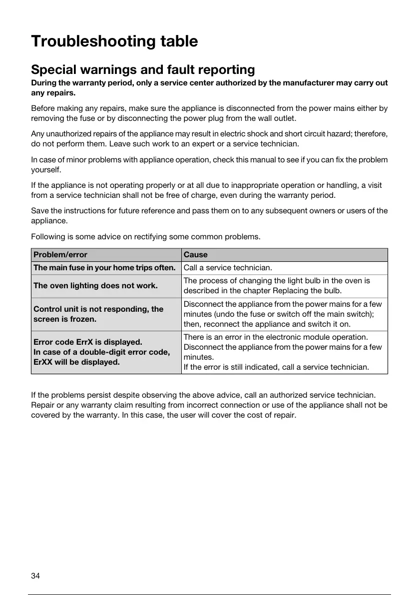 In case of minor problems with appliance operation, check this manual to see if you can fix the problem