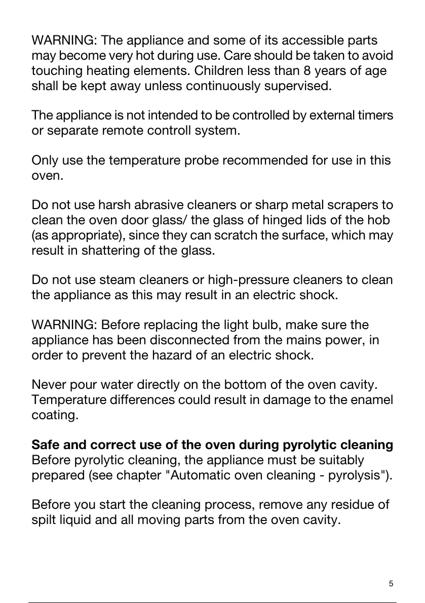 Before pyrolytic cleaning, the appliance must be suitably