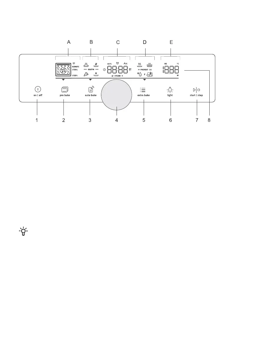 5. (extra bake) key for extra functions and general appliance settings