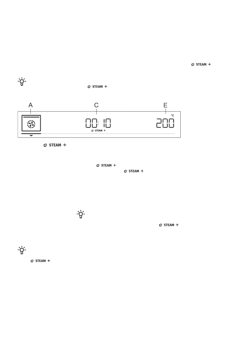 The steam injection symbol will appear on the display unit if you have selected a