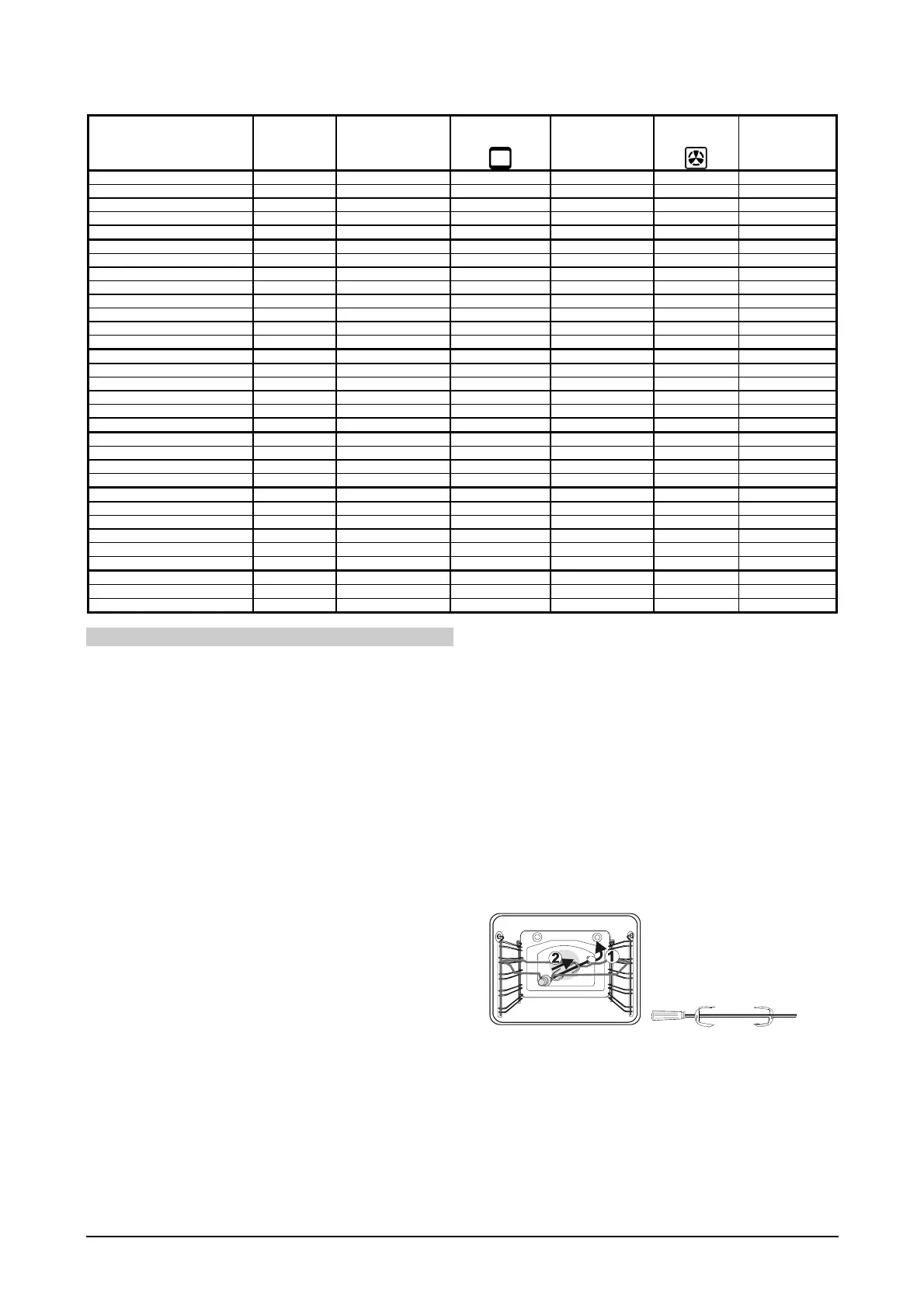 • Grilling tables indicate the recommended temperature, guide