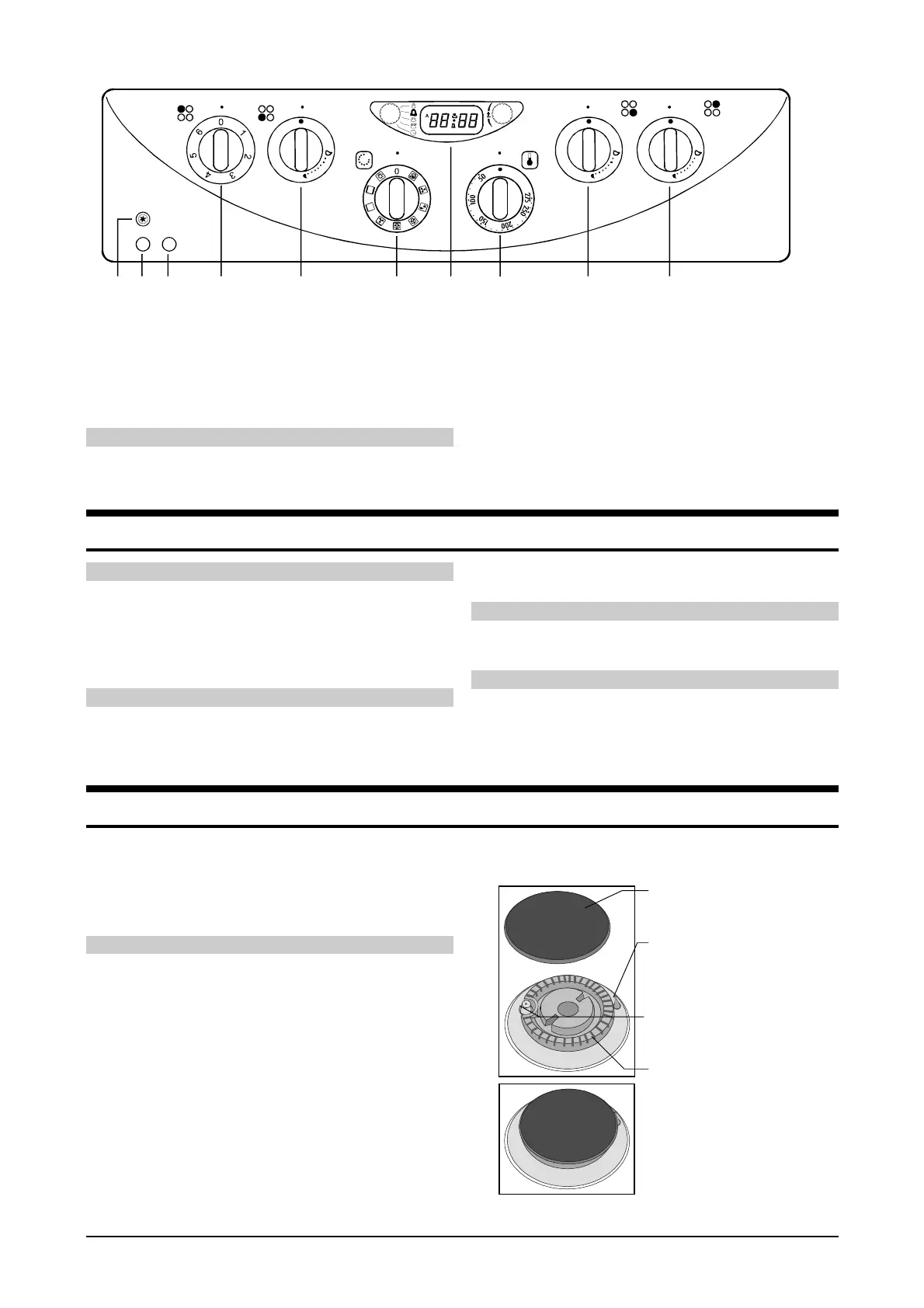 Cooking burners are controlled by the relevant control knobs.