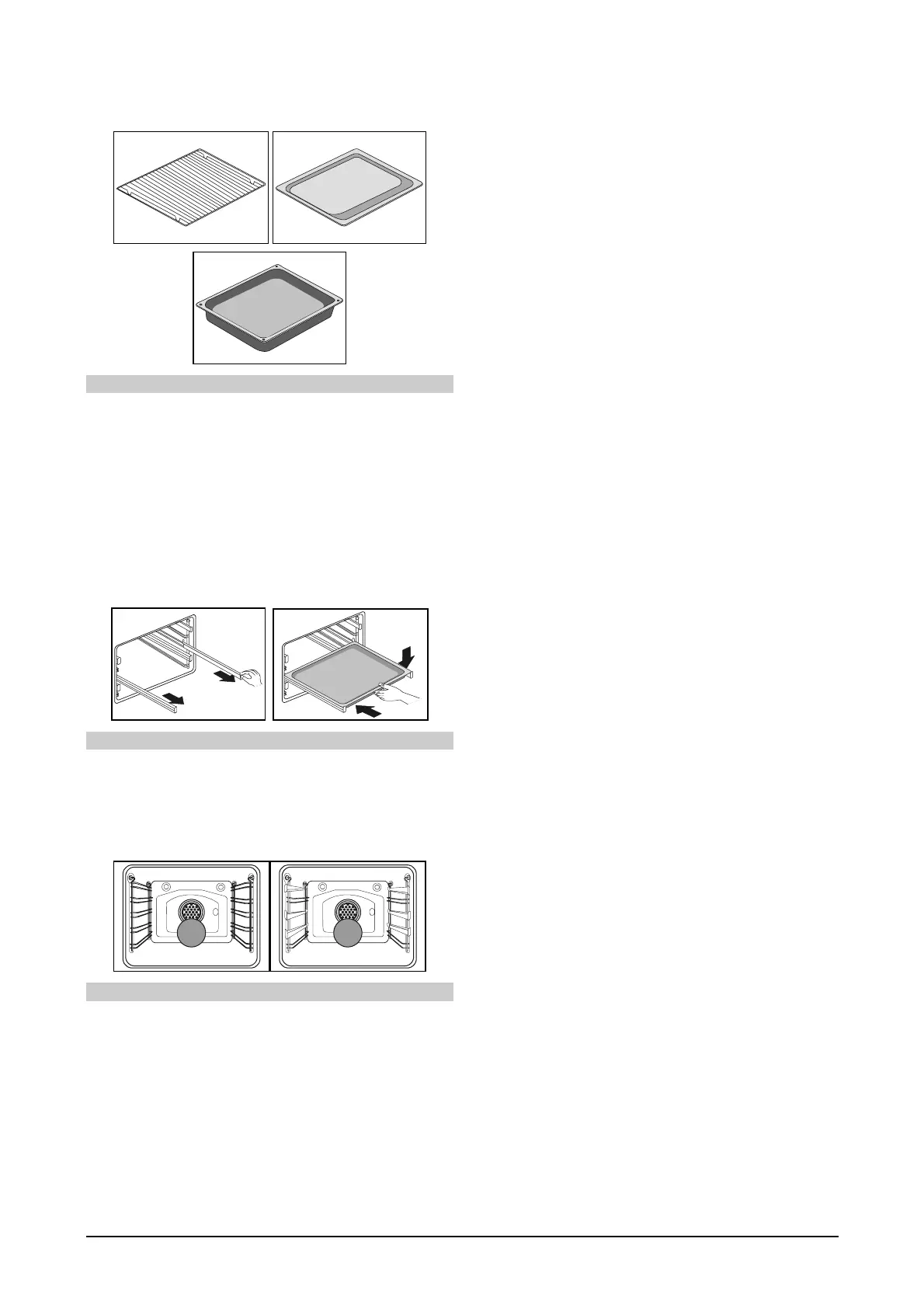• To insert the grid, baking or roasting pan, first slide out the