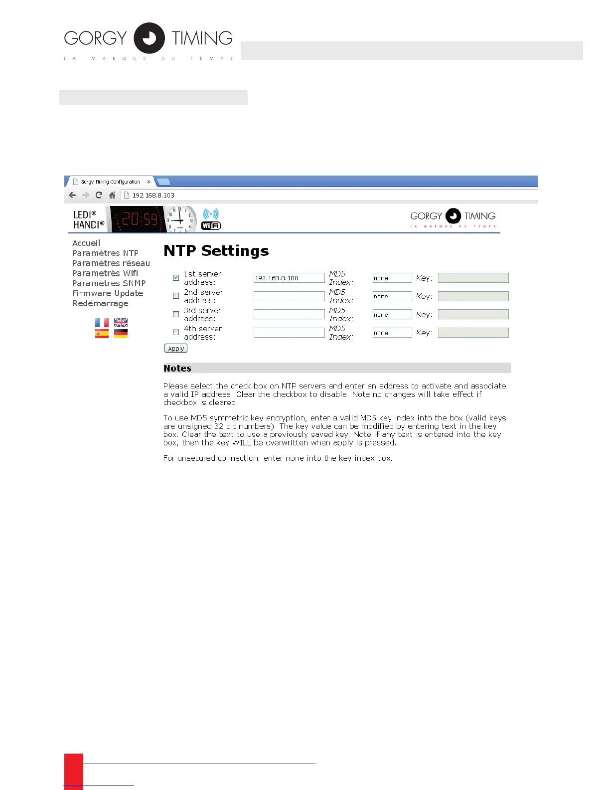 Renseigner les champs, puis cliquer sur « Apply » pour valider cette conguration.