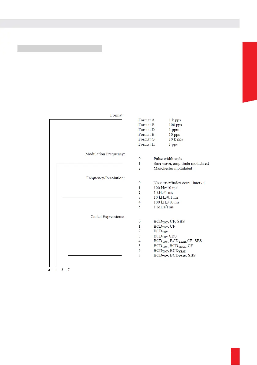 expressions of binary codes transmitting date and time information. There are 6 code formats