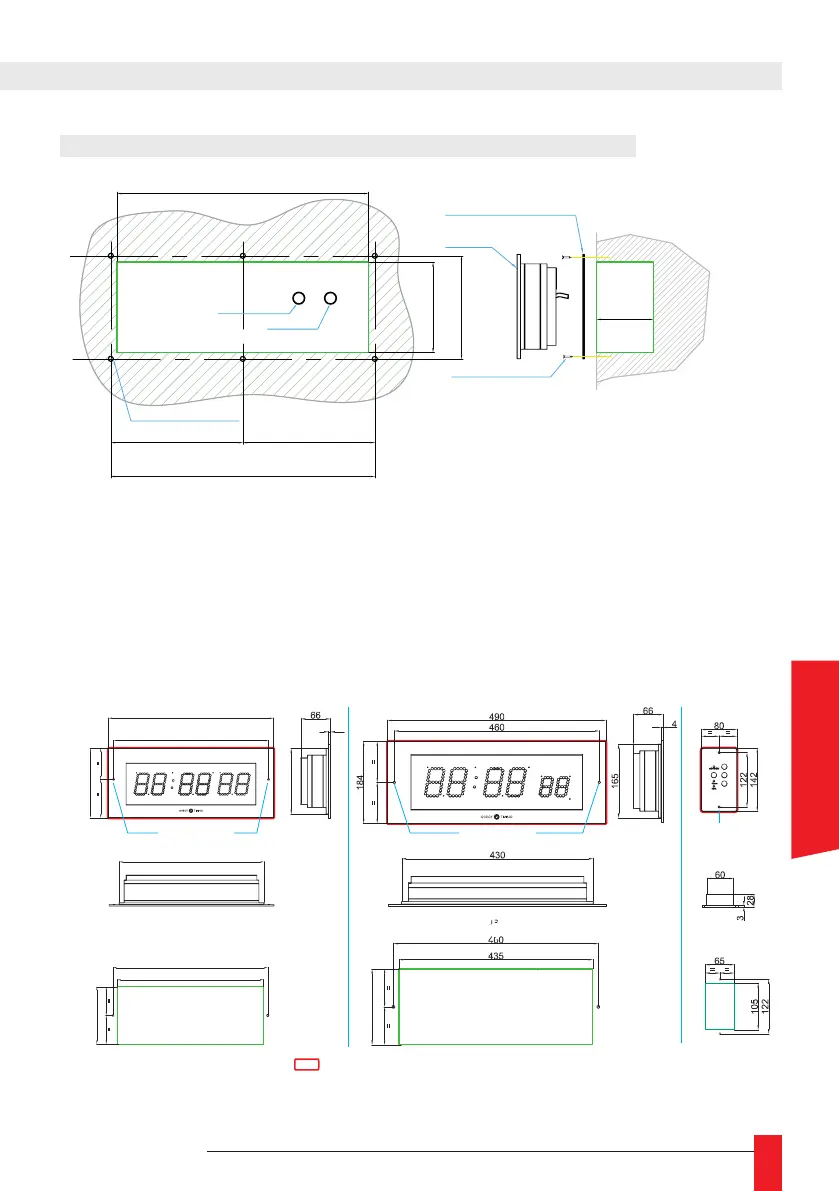 Clock wall opening, depth 90 mm.