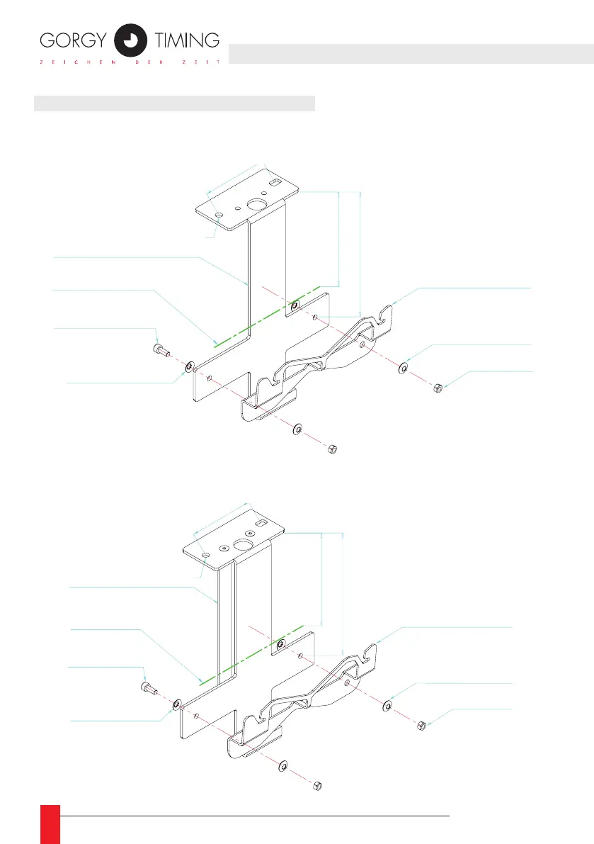 Gorgy Timing LEDI Series - Befestigung mit Halterung; Anpassung der Deckenhalterung für Einseitige Innenuhr LEDI (Kleine Modelle): LEDI 5(S), LEDI 7(S), LEDI 5.60(S), LEDI 7.60(S); Anpassung der Deckenhalterung für Einseitige Innenuhr LEDI (Große Modelle): LEDI 10 (S), LEDICA