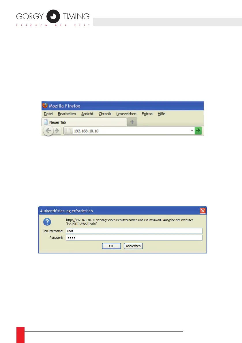 Oberäche zu öffnen, tragen Sie die IP-Adresse des Gerätes in die Adressleiste des Web-