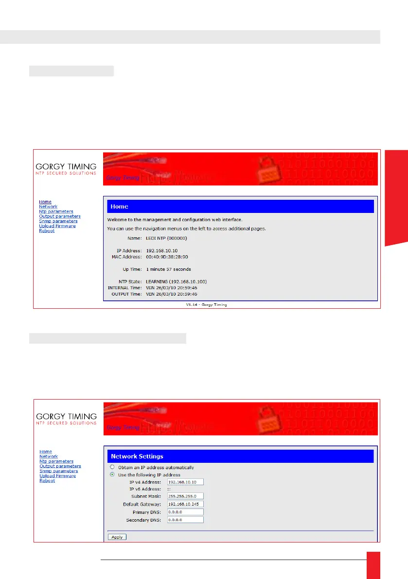 ► This page allows to congure the network to which the clock is connected. The user can