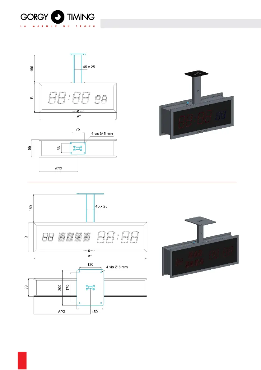 Gorgy Timing LEDI - Ceiling Mounting with Bracket for LEDICA & LEDICACA Indoor Clock Double Face