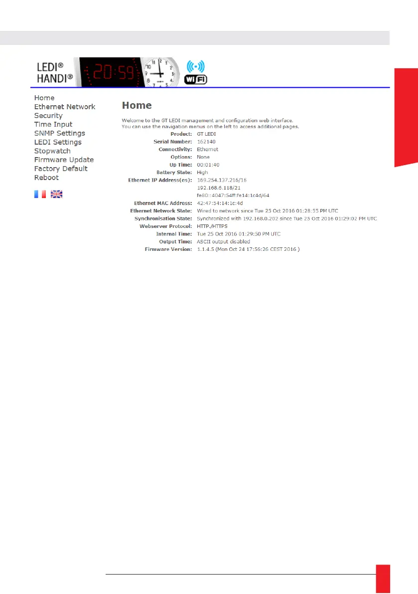 ► Uptime and Internal Time: how much time the product is on and current internal time (UTC).