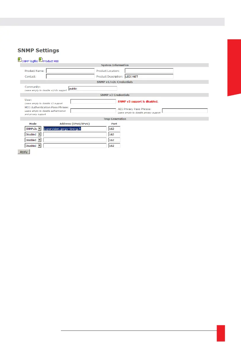 For better security, Gorgy-Timing product can use SNMPv3 protocol which allows pri-vacy and