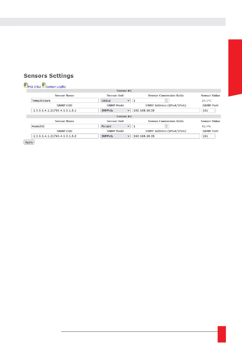 Warning: Please refer to the documentation and in particular to the SNMP MIB of the SNMP sensor for