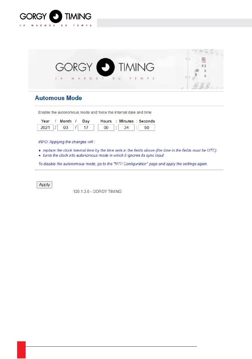 Once applied, the internal time of the clock is defined by the fields « Year », « Month », « Day »,