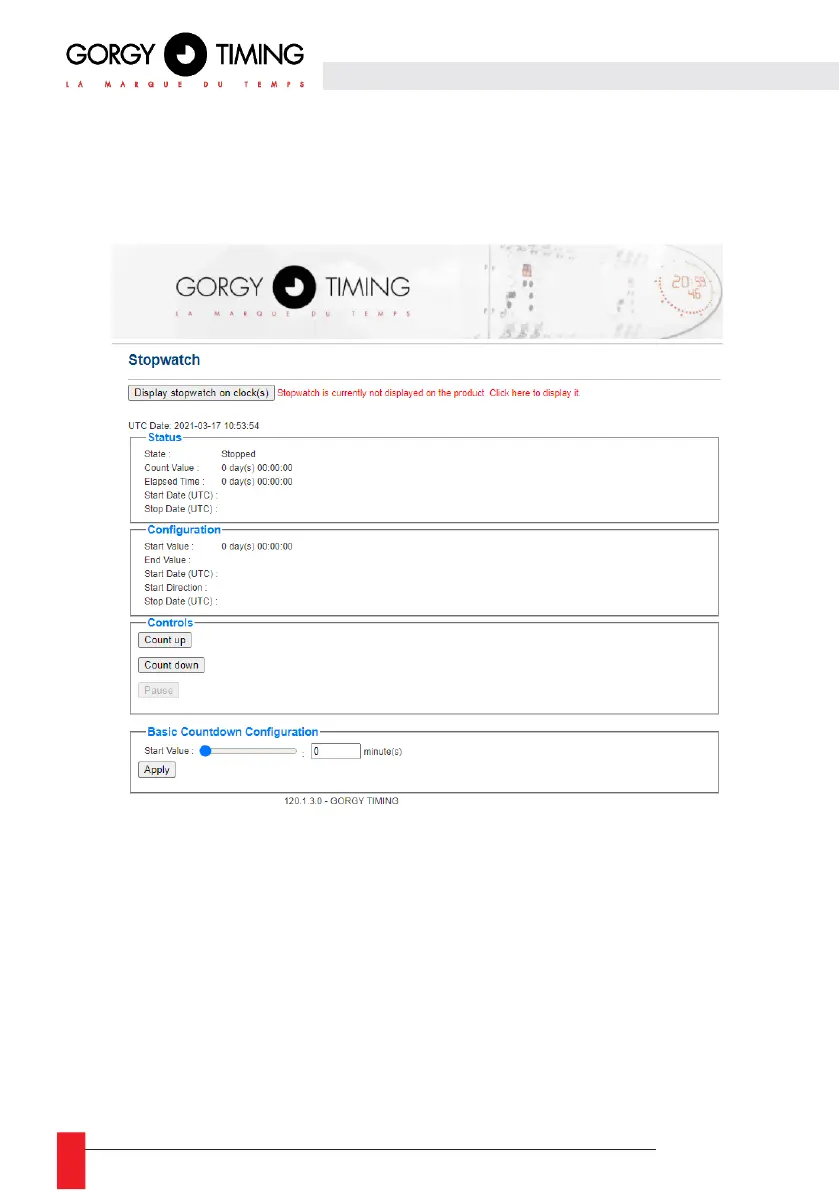 Warning : The Stopwatch Web page allows you to configure only ONE product at a time. If you