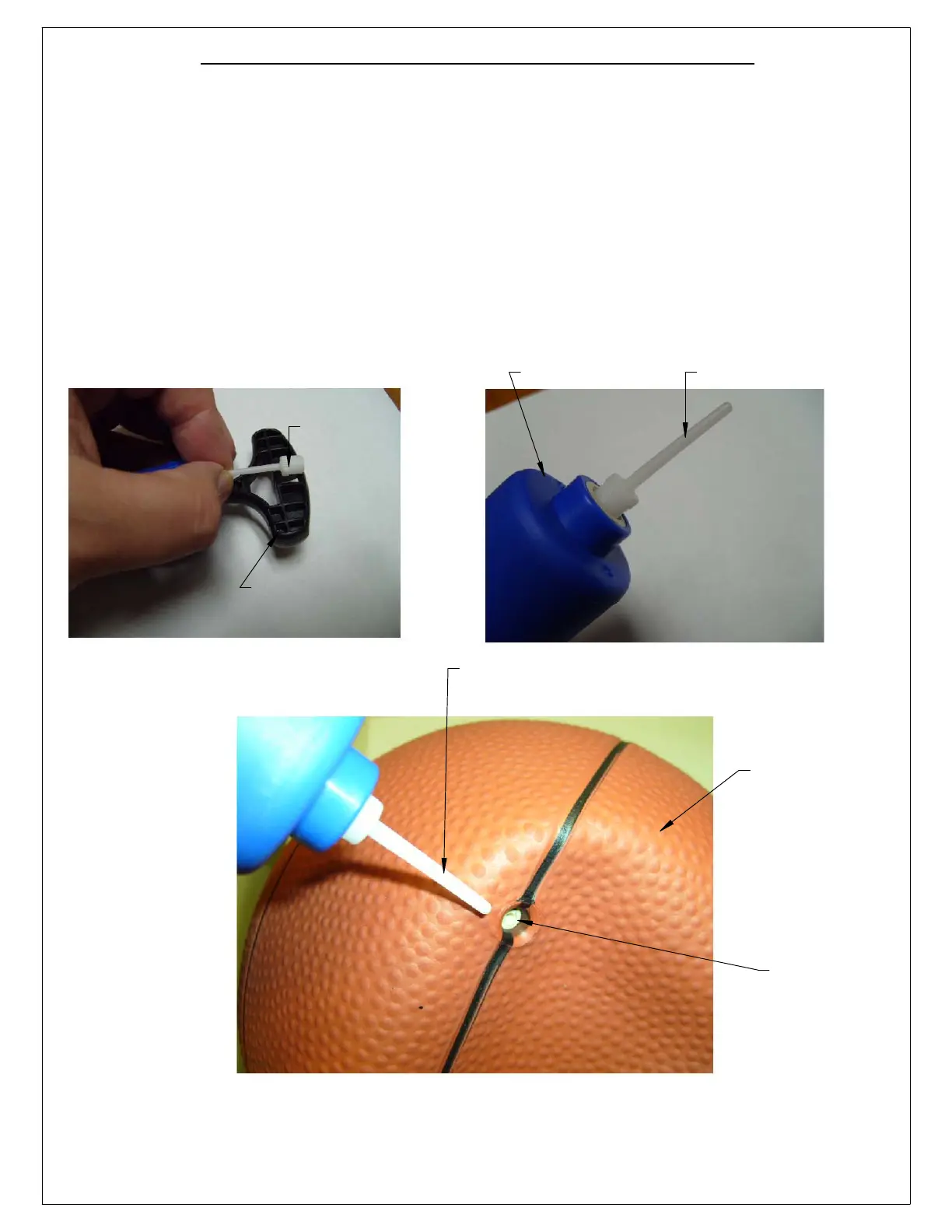 4) INSERT THE AIR NEEDLE INTO THE SMALL VALVE IN THE BASKETBALL.