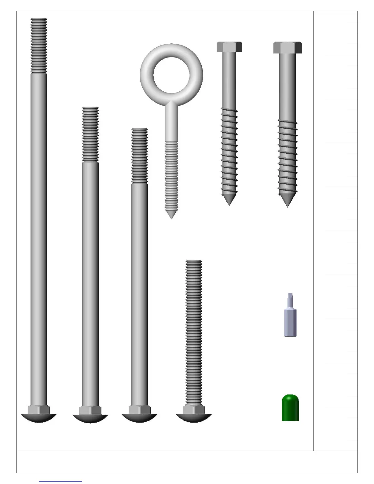 USE THE RULER TO THE RIGHT TO MEASURE YOUR BOLTS AND SCREWS. PICTURE VIEWS SHOWN
