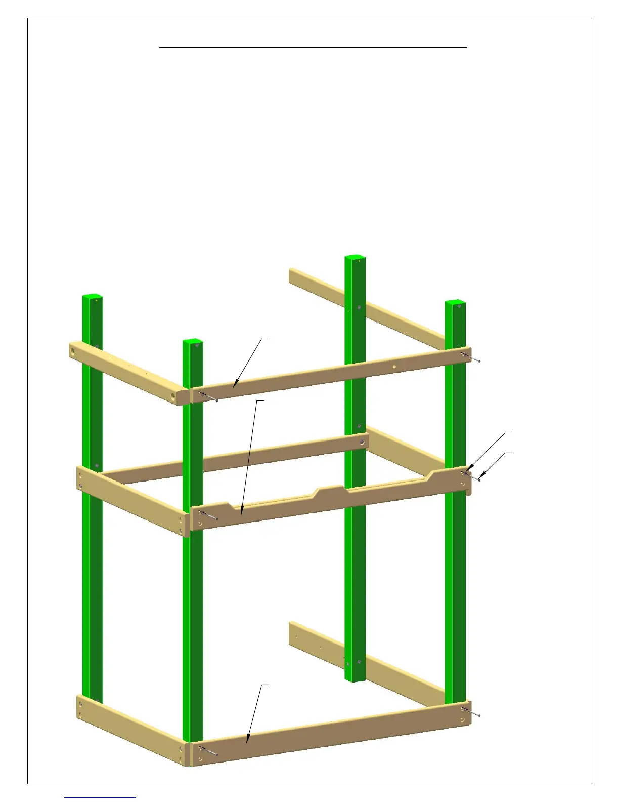3: PLACE THE 2 X 6 X 70" FRONT FACE BOARD WITH NOTCHES ON THE FRONT OF THE CORNER POSTS. THE OFFSET