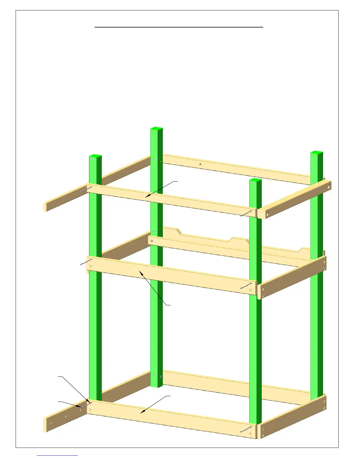 5: PLACE THE 2 X 4 X 70" REAR TOP PANEL BOARD ON THE FRONT OF THE CORNER POSTS. THE OFFSET HOLES IN THE