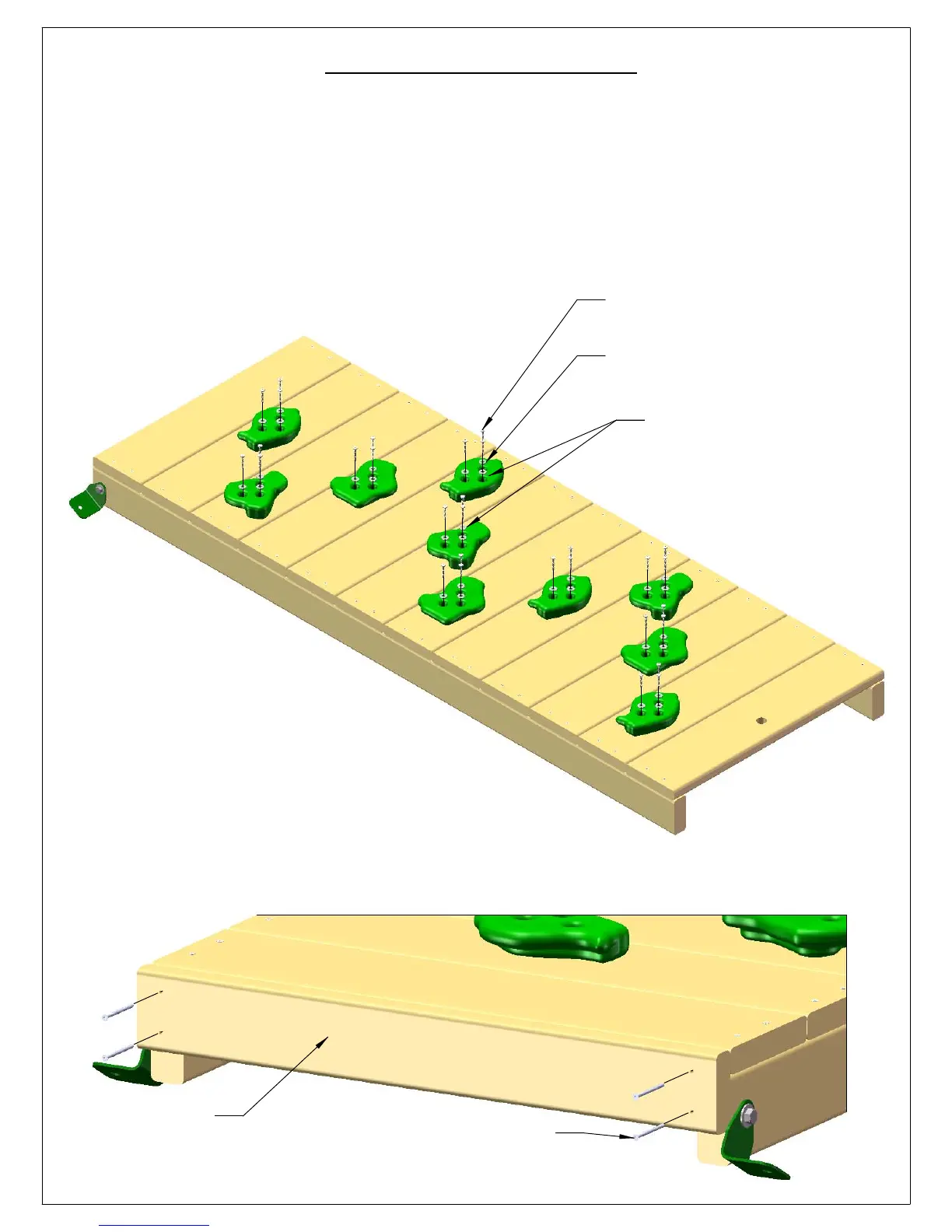 3: PLACE THE 5/4 X 3 X 23-7/8" ROCK WALL TOP CAP ON TOP OF THE ROCK WALL SIDES. FASTEN THE ROCK WALL