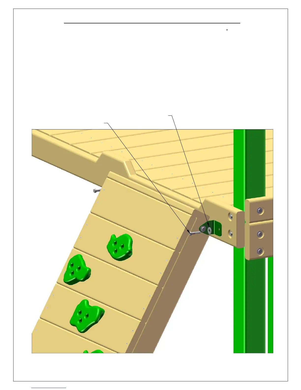 3: ATTACH THE ROCK WALL WITH 5/16 X 1-1/2” BOLTS AND 5/16” WASHERS.