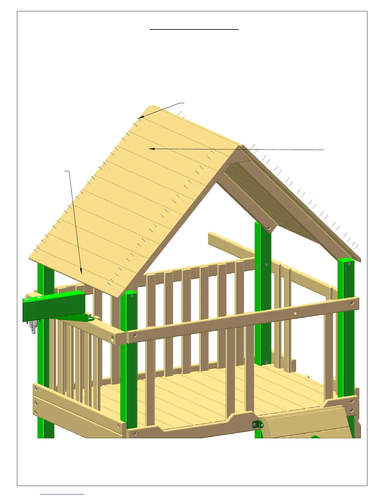 1: PLACE THE 1 X 6 X 47-1/2" ROOF BOARDS ON TOP OF THE ROOF SUPPORTS, FITTING THE TONGUE END INTO THE