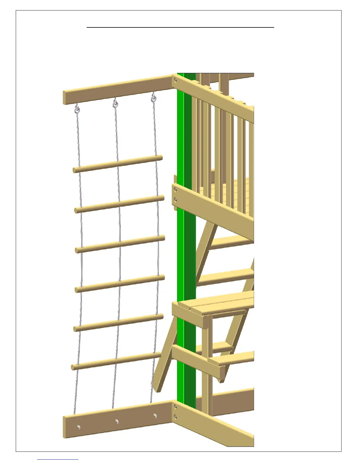 2: THREAD THE BOTTOM OF THE ROPE LADDER THROUGH THE HOLES IN THE ROPE LADDER RUNNER AND TIE A