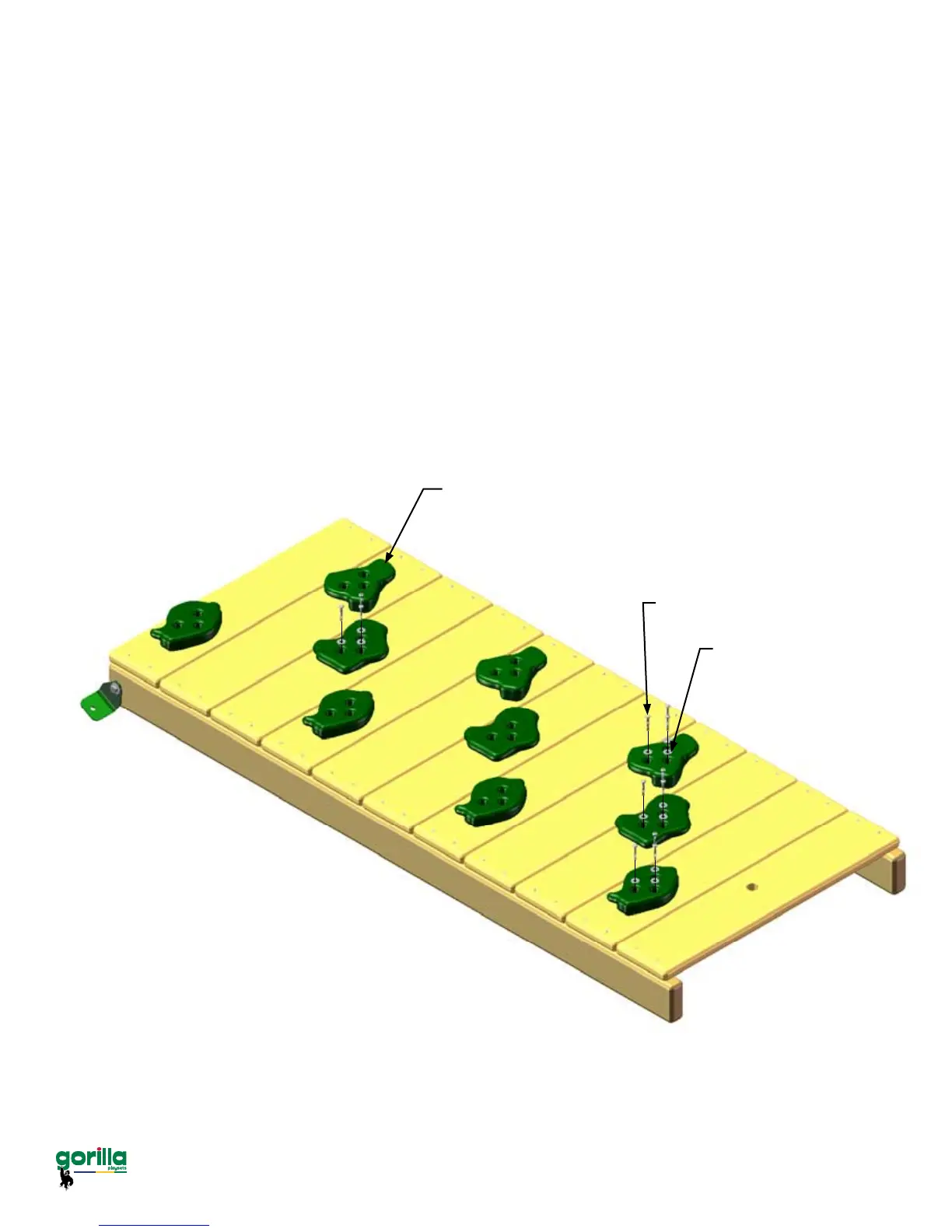 2: Place the Climbing Rocks in a staggered pattern on the Rock Wall Boards. Place