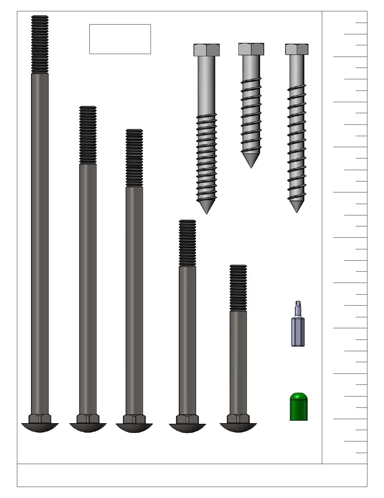 USE THE RULER TO THE RIG HT TO MEA SURE YO UR BO LTS AND SC REW S. PIC TURE VIEWS SHO WN