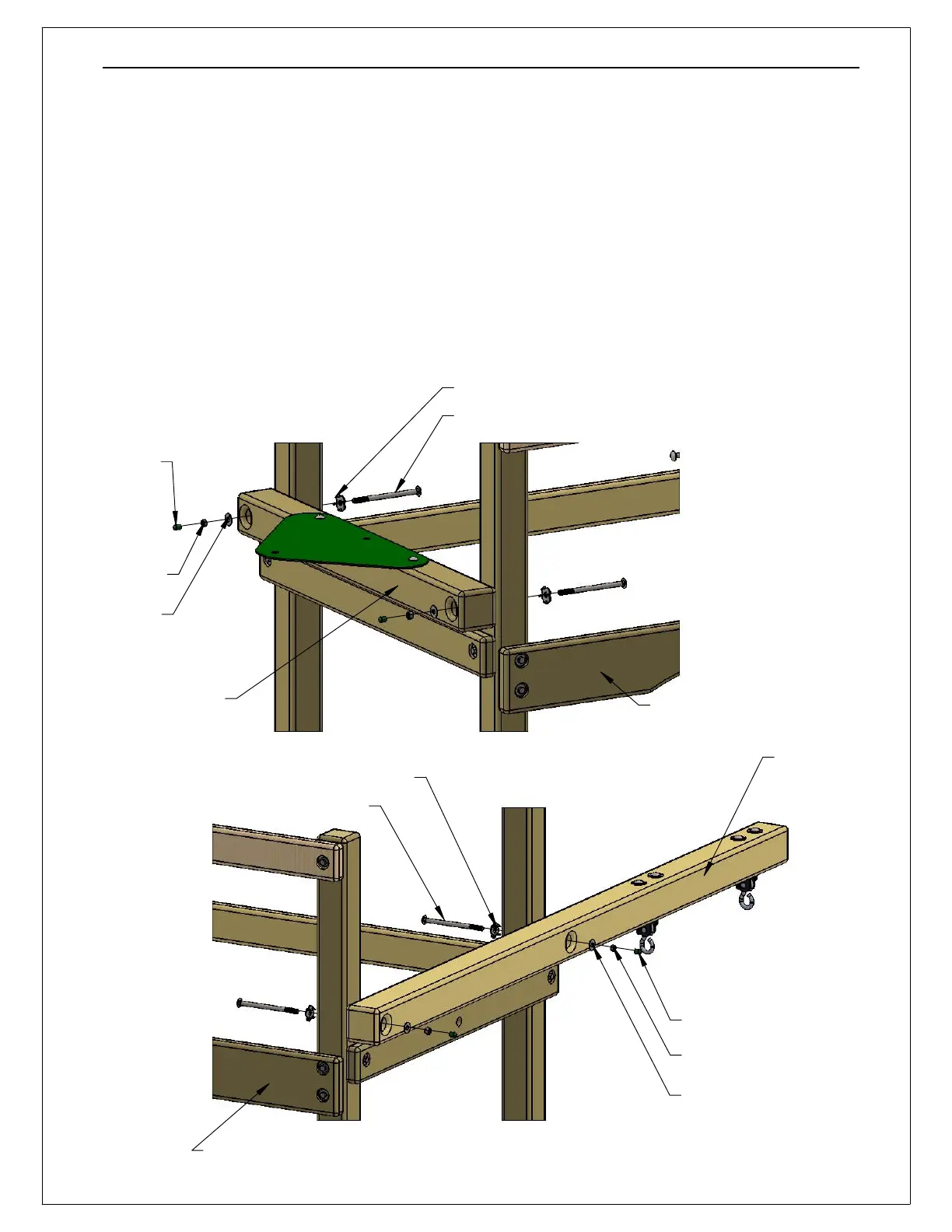 2: FASTEN THE SWING BEAM MO UNT TO THE C O RNER PO STS USING 3/ 8" X 6-1/ 2" C A RRIA G E