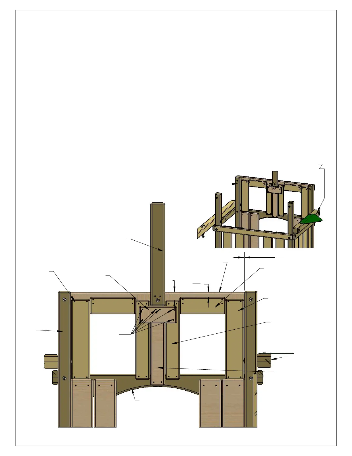 BO ARD WITH TWO # 8 X 1-1/ 4" W O O D SC REWS. FASTEN THE C ENTER W ALL PA NEL BO A RD A T THE BO TTO M TO THE