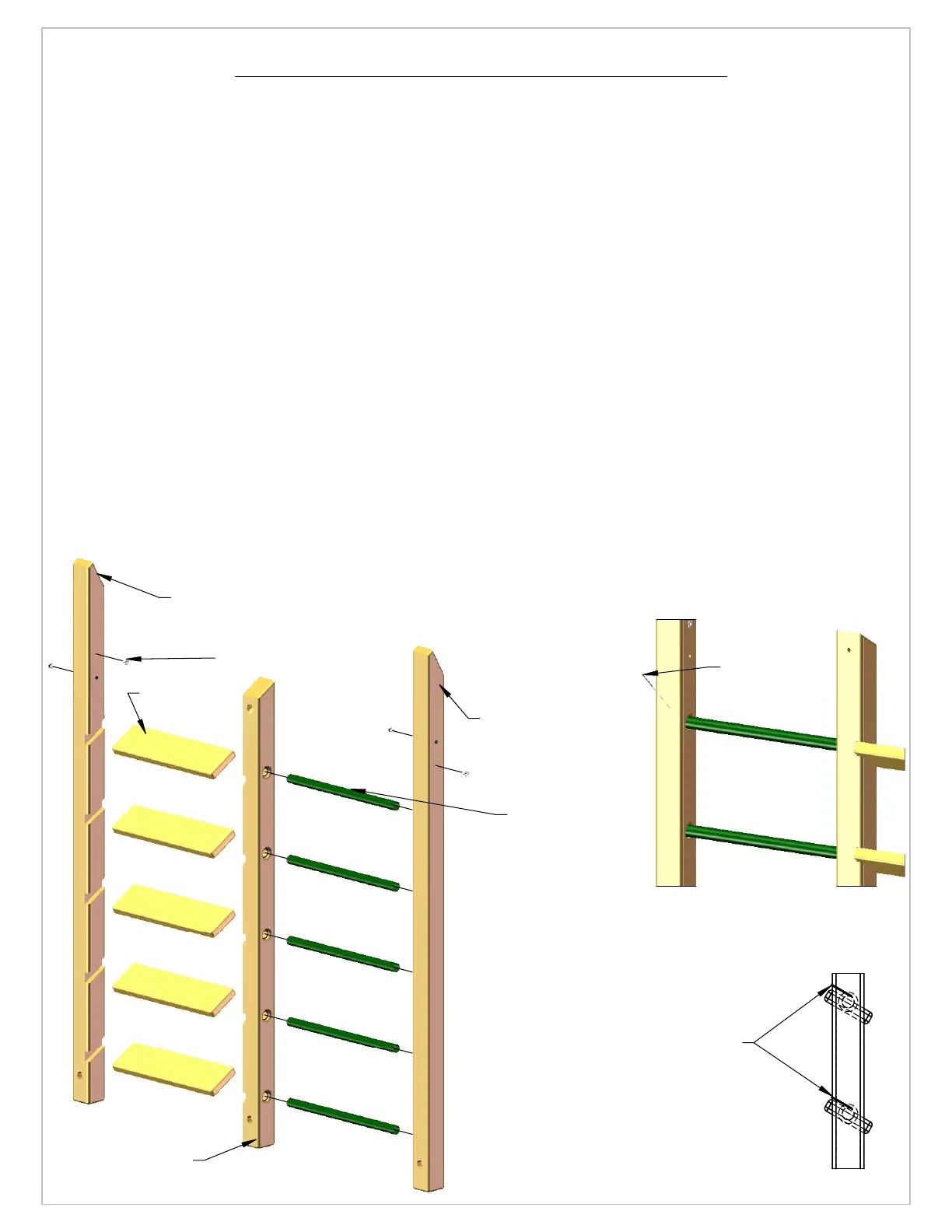 5: TAKE THE OTHER LADDER SIDE BOARD AND LINE UP THE LADDER RUNG HOLES WITH THE METAL LADDER RUNGS