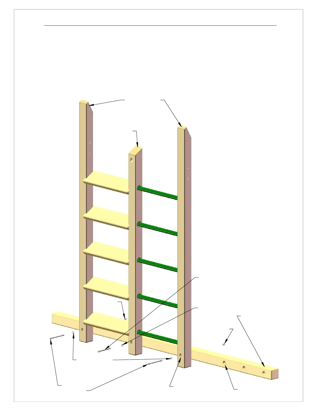RUNNER. ATTACH THE LADDER CENTER TO THE ROPE LADDER RUNNER USING ONE 3/8" X 5" LAG SCREW AND ONE