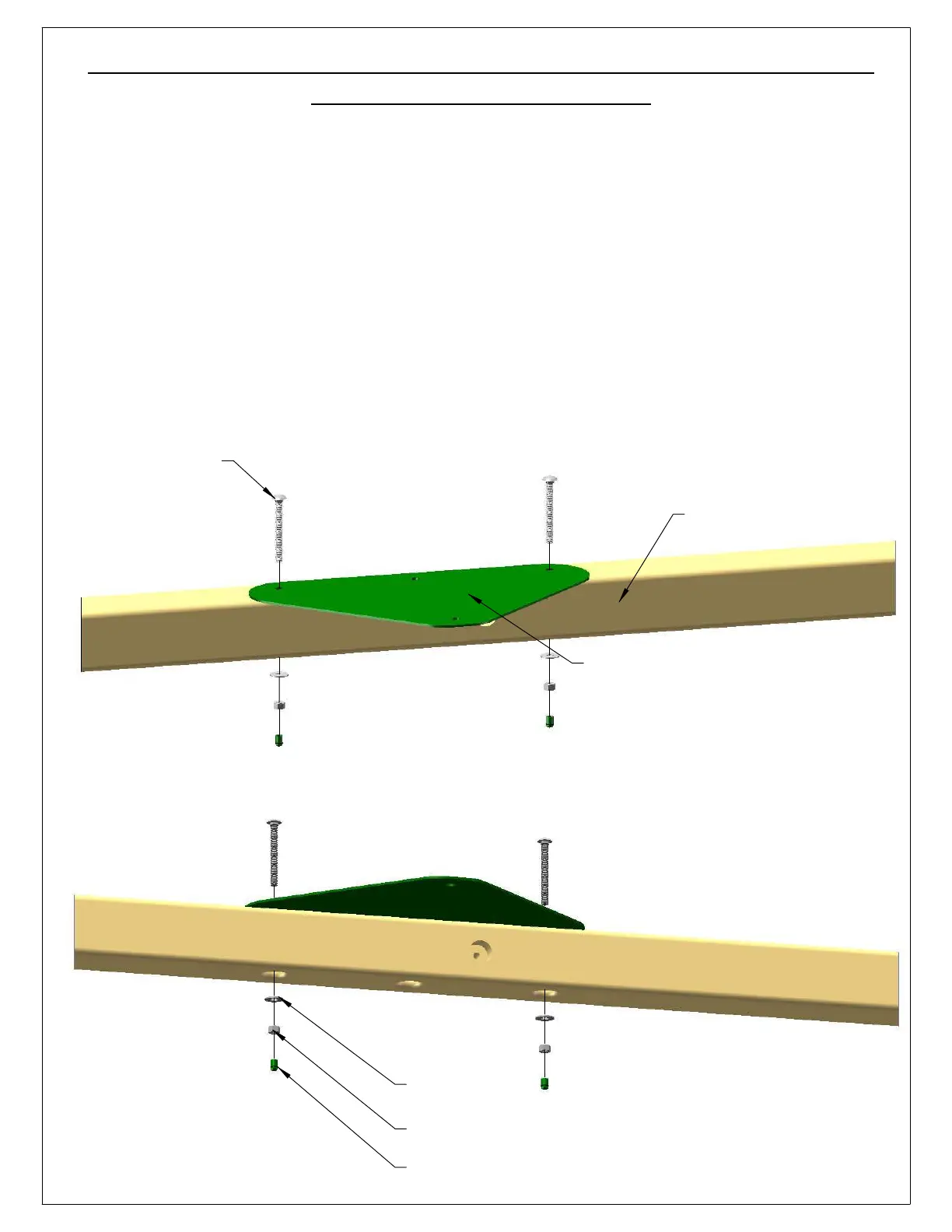 3: PLACE THE SWING BEAM PLATE ON TOP OF THE SWING BEAM SIDE RAIL AND LINE UP THE THREE HOLES ON THE