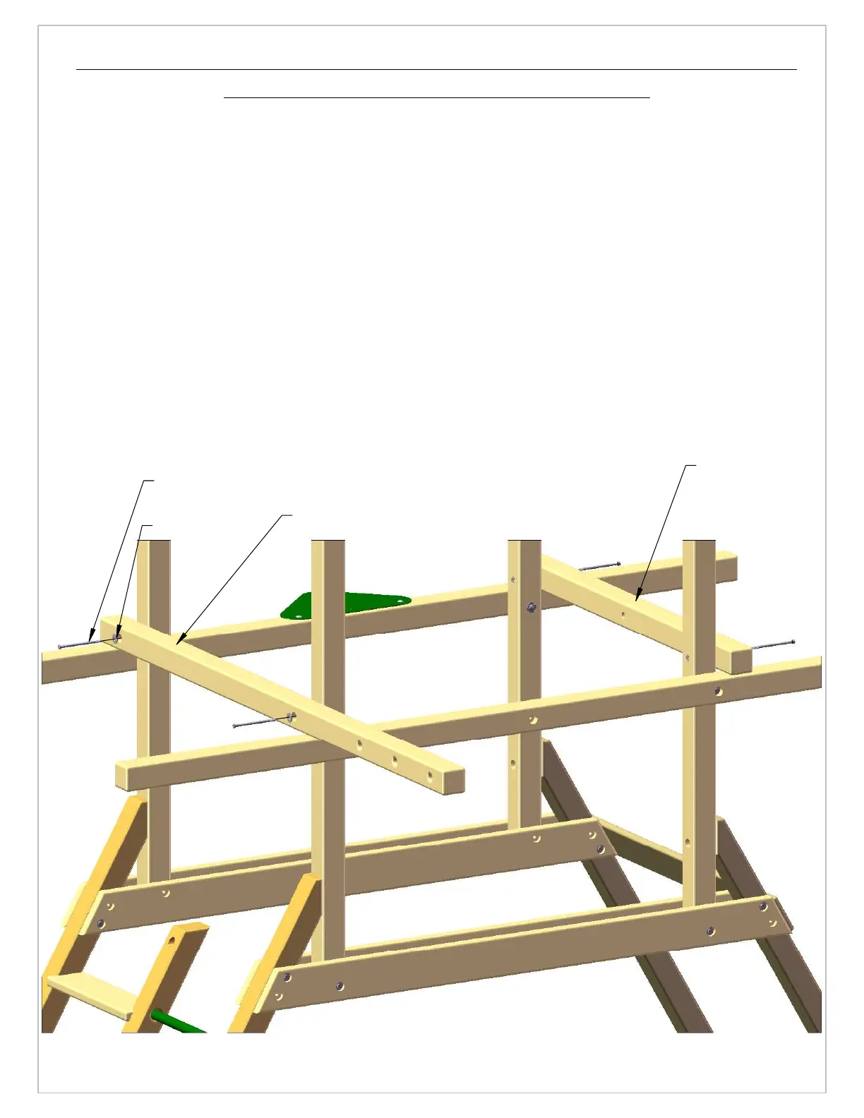 1: FIND THE 4 X 4 X 88" ROPE LADDER SUPPORT AND LAY IT ON TOP OF THE SIDE RAIL AND THE SWING BEAM SIDE