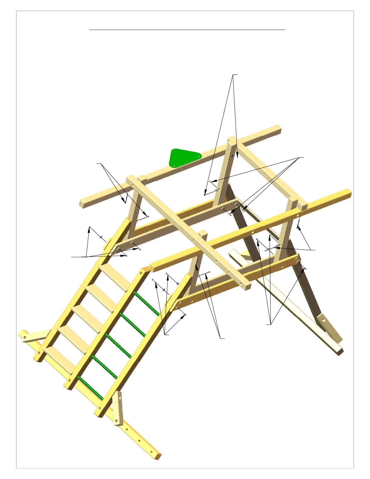 3: THE UPPER PART OF THE FORT NEEDS TO BE SECURED WITH 3/8 X 5" LAG SCREWS WITH 3/8" WASHERS IN THE