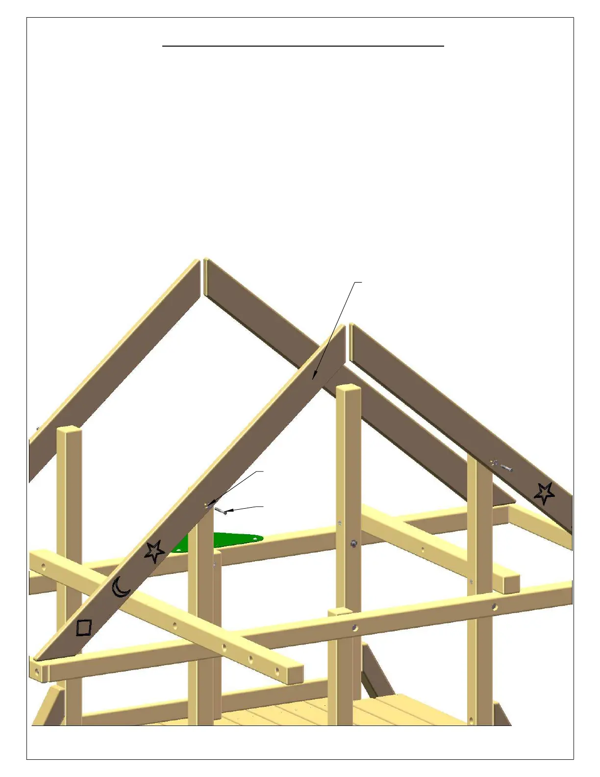 3: ATTACH THE ROOF SUPPORTS TO THE CORNER POSTS WITH 3/8 X 3-1/2" LAG SCREWS AND 3/8" WASHERS.