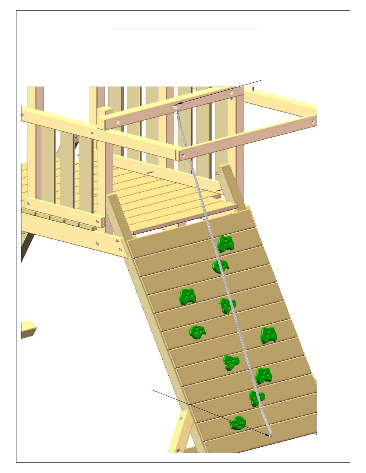INSIDE OF THE TOP PANEL BOARD. ADD KNOTS IN ROPE TO AID IN CLIMBING. SET KNOTS ACCORDING TO YOUR