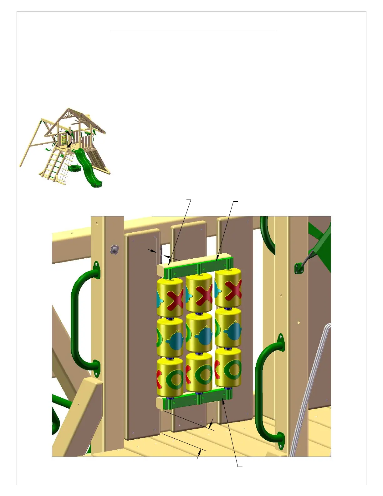 4: MOUNT THE LOWER TIC TAC TOE BOARD 4" ABOVE THE DECK. ATTACH THE TIC TAC TOE BOARDS TO