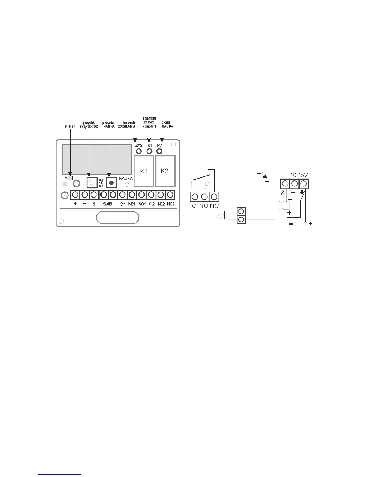 Diode K2 (red) – it signals that the relay 2 is open. During learning it indicates the programming procedure