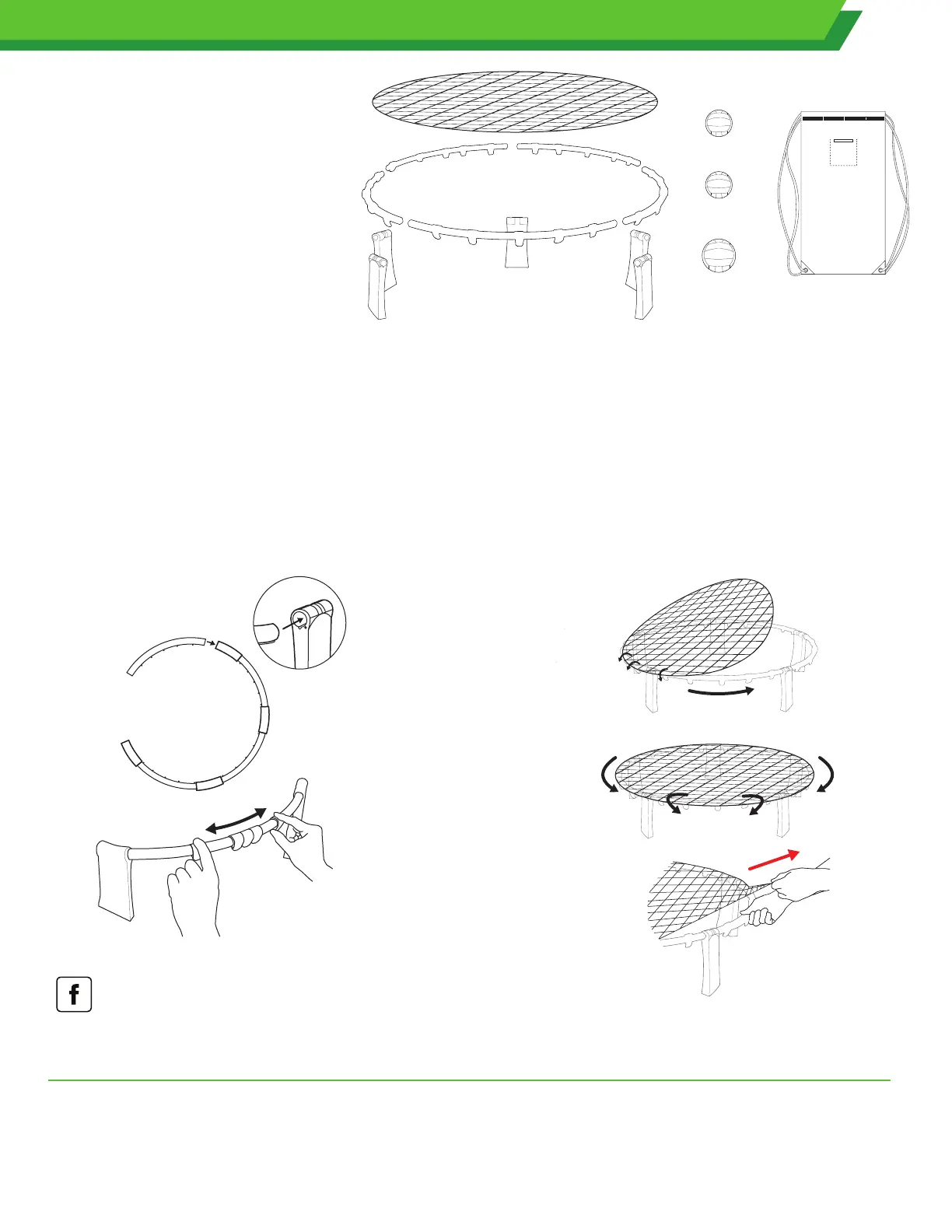 1: Insert the five pipe segments into legs to make a complete circle. Be sure the ridge of pipes are facing the ground.