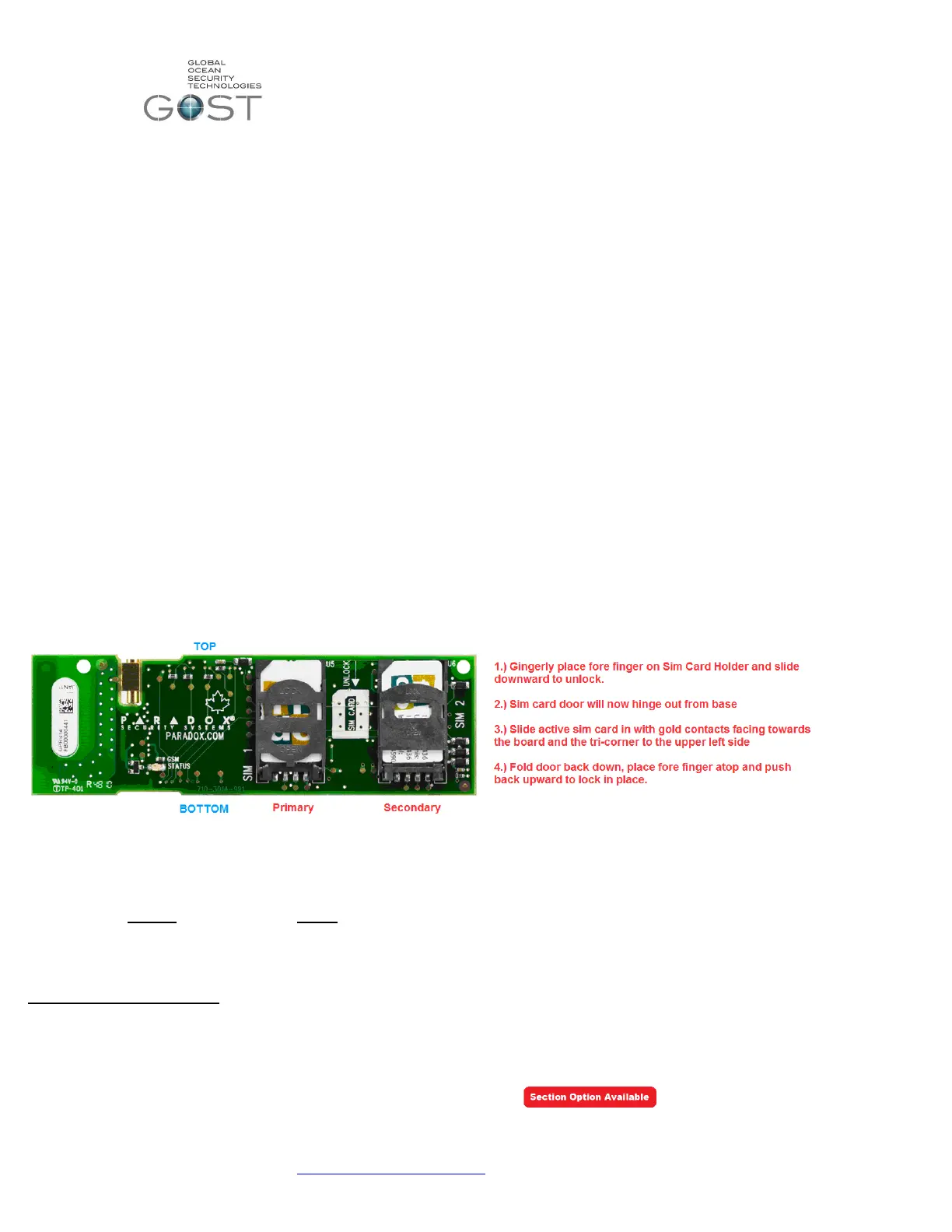 1” See description in Figure 3 to insert sim card(s) into onboard module. Most clients will only have the need for one primary