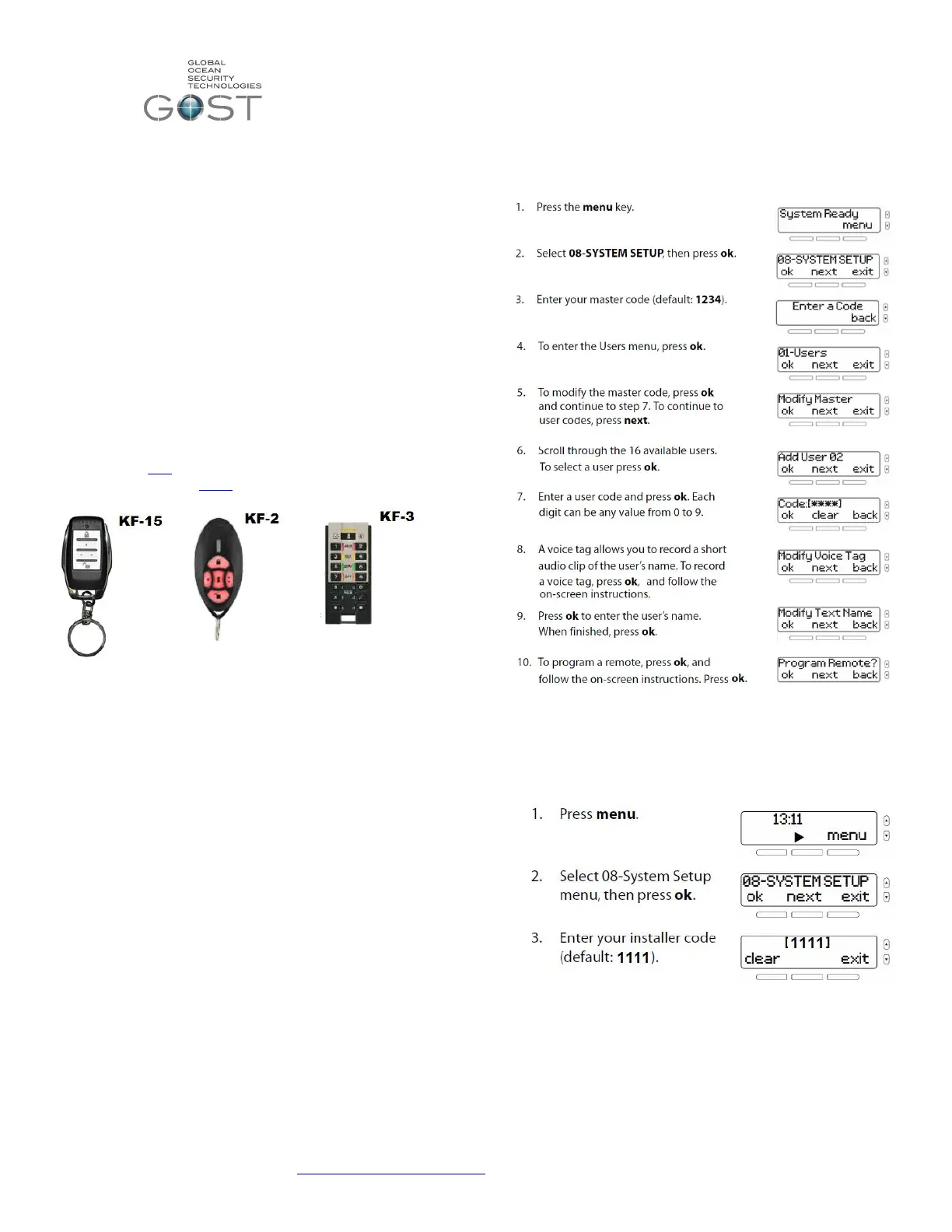 * Note- For every user code programmed to the GOST